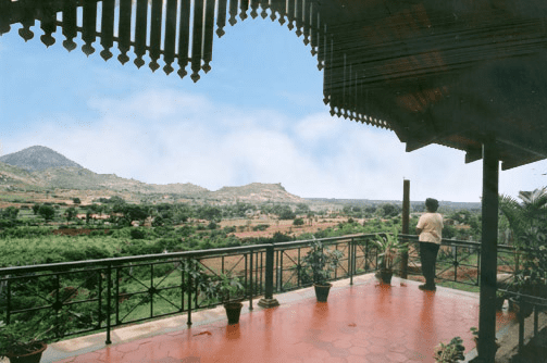 Built on the hillside, the farmhouse offers mesmerizing views of the surrounding hills and plains.