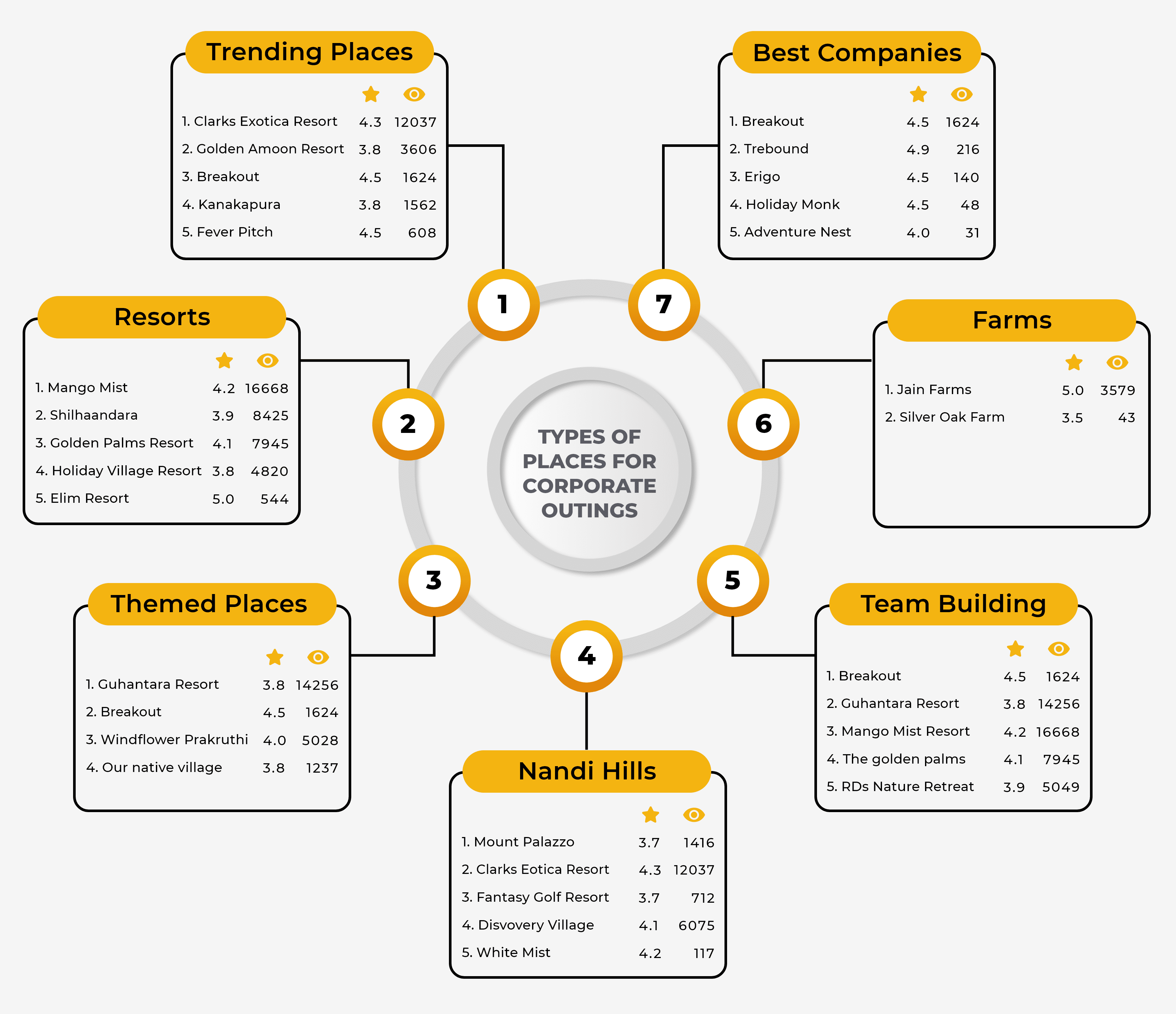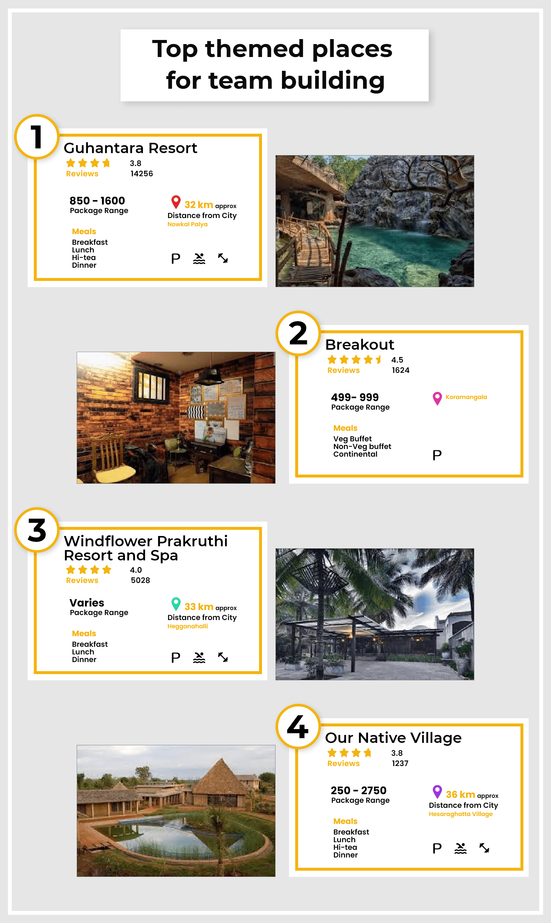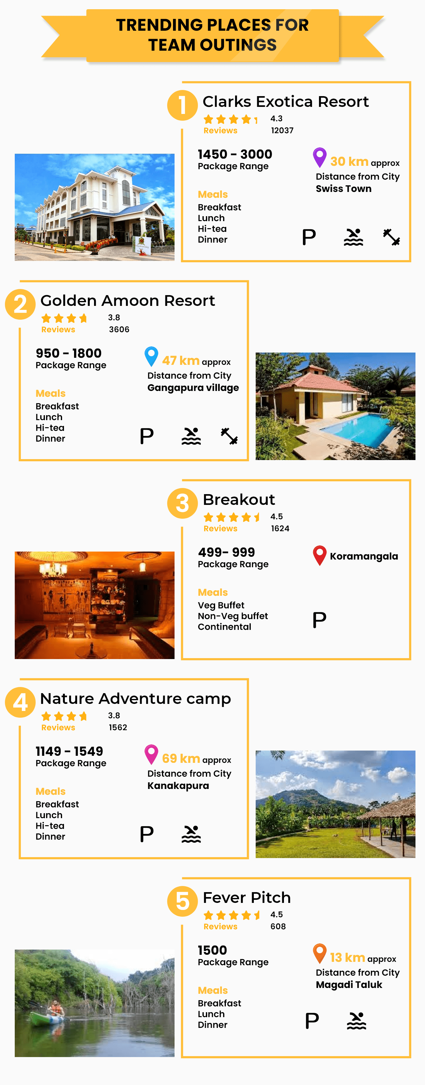 Team outing places in and around Bangalore are in great demand as the city is home to thousands of offices.